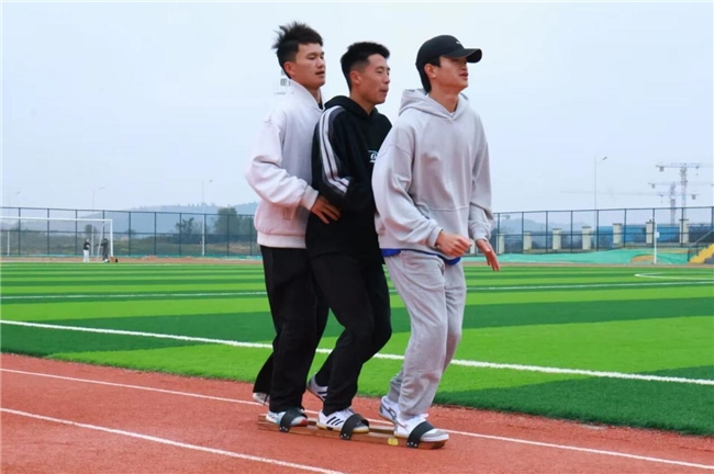 板鞋竞速起源于我国西南地区民间日常使用的木板拖鞋,是一项具有观赏性的民族传统集体竞速项目。2007年,在第八届全国少数民族传统体育运动会上,板鞋竞速首次被列为竞赛项目,并逐渐发展成为一项注重团队协作、节奏统一与默契配合的竞技运动。比赛中,三名运动员需将脚共同固定在同一双板鞋上,在标准田径场上统一步伐齐步跑,具有很强的体育性和观赏性。
